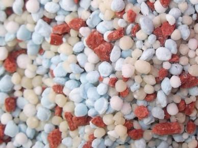 什么泡沫?红的是钾肥,黄的应是一铵或二铵。天蓝色的按理来说应是氮肥,但是不太象氮肥,燃烧后变成黄色
