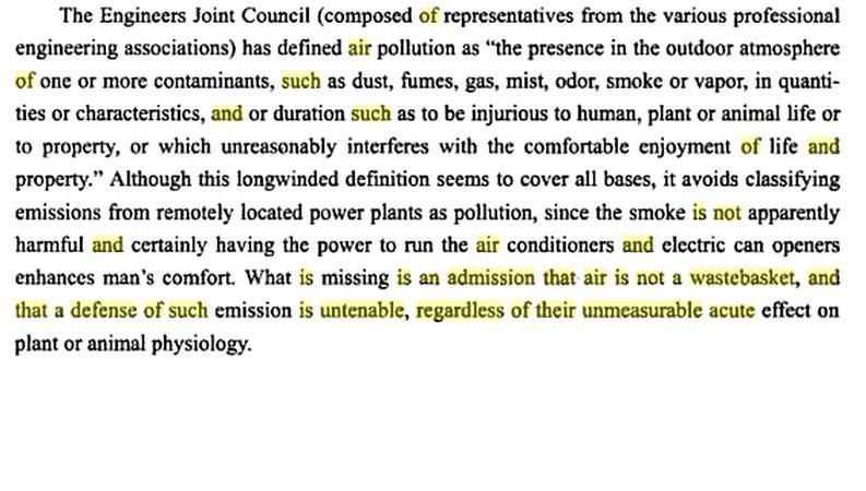 what is missing is an admission that air is not a wastebasket and that a defense of such is untenable ,regradless of their unmeasurable acute effect on plant or animal phsiology. 我的翻译为: 现在(我们或社会)缺失的是对“空气不是一个垃圾桶”的认可(或认同),即使不考虑空气对植物及动物生理学上的严重影响,任何对“空气不是一个垃圾桶”的辩解(或反对的言论)都是站不住脚的。 |