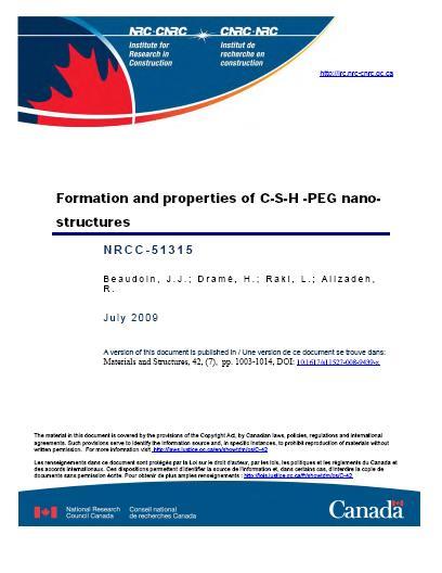 加拿大NRC C-S-H凝胶-PEG的纳米结构形成和性能