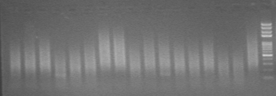 最近做PCR总是出现弥散条带,以前做的时候都没有出现过 但是最近只要做一次就会出现弥散,请大家帮帮我,看看是什么原因啊 还有我做的是25微升体系 mix:12.5 引物:1 酶:0.25 模板:1 拜托大家了 很急哎 以前做的pcr 最近一直做的pcr |