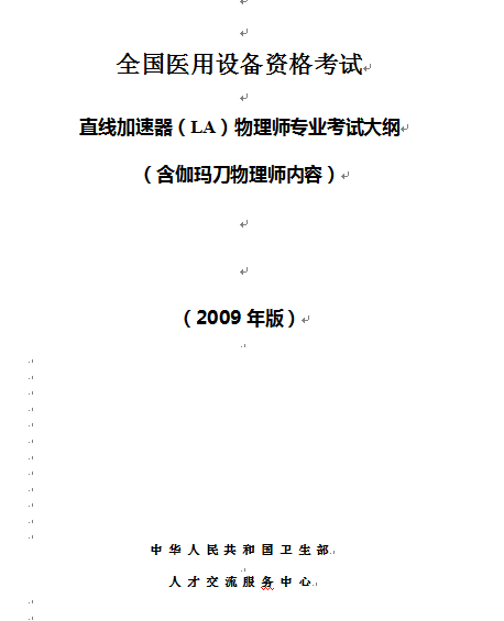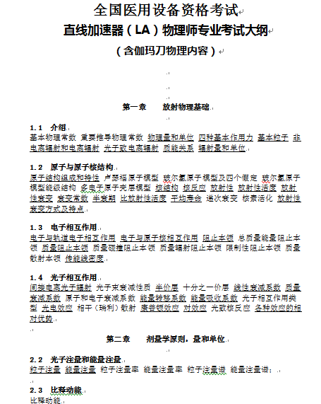 【考试大纲】直线加速器---物理师上岗证考试大纲