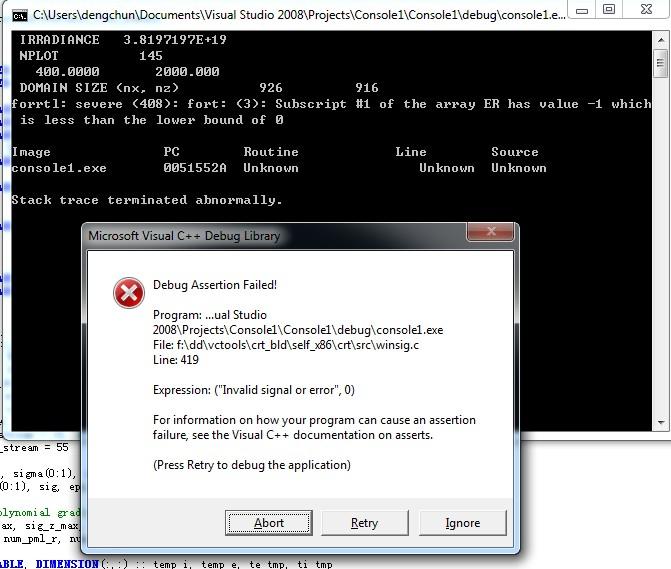 请教下这什么问题,断点为什么会出现在这里。导师的程序该是是没问题的。 我是win7 VS2008 也安装了intel Fortran什么的,打开都是vs2008打开的 fortran调试断点 用ctrl+f5后的结果 [ Last edited by kevin123581 on 2012-4-27 at 17:16 ] |