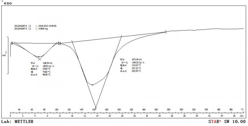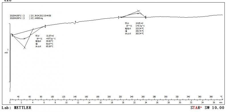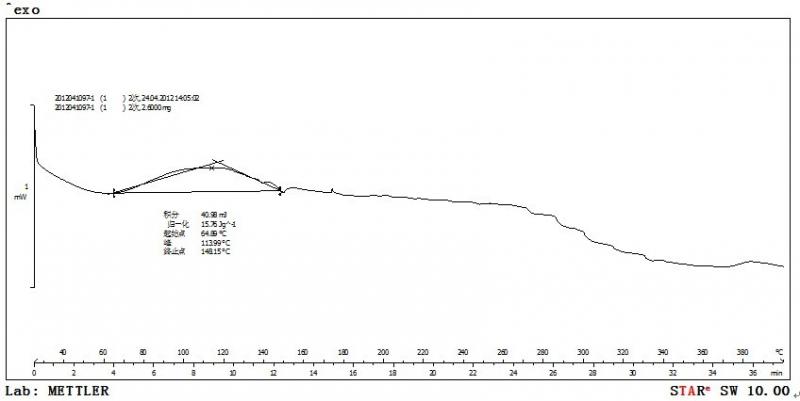 研究了半天都没弄清楚,第一个图为什么有那么宽的放热峰,是化学反应吗?两个样品中一个是聚酰胺酸的,一个是聚酰亚胺的,我记不得第一个是不是聚酰胺酸了,如果是,那么对应酰亚胺化反应应该是吸热的。另外,该聚酰亚胺的Tg应在250左右,不知道该怎么分析,求高手指点! 试样1 试样1的二次升温 试样2 试样2的二次升温 |