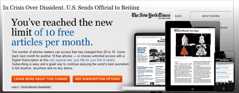 纽约时报网上阅读,每月有阅读上限吗,今天怎么说由20篇降为10篇per month