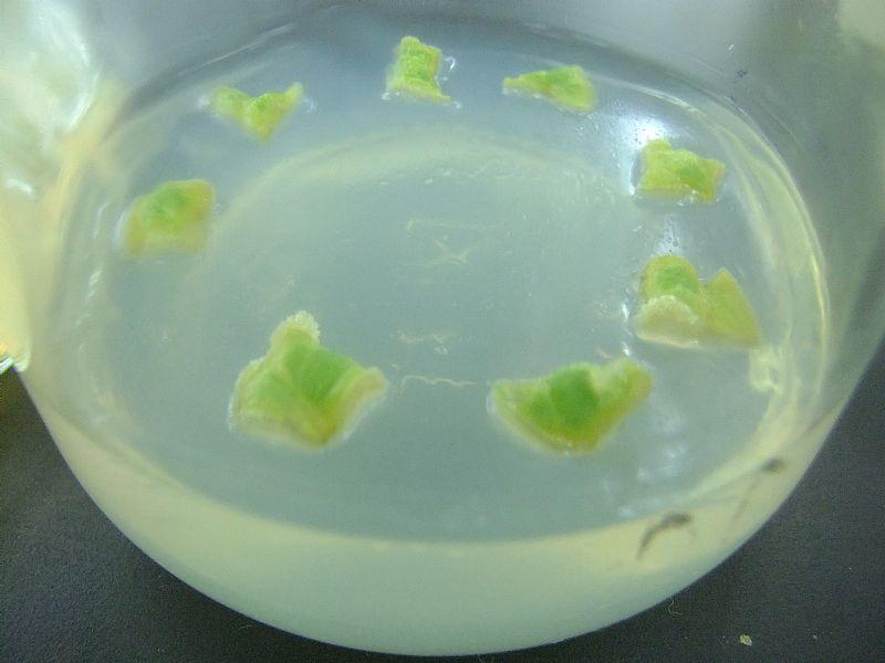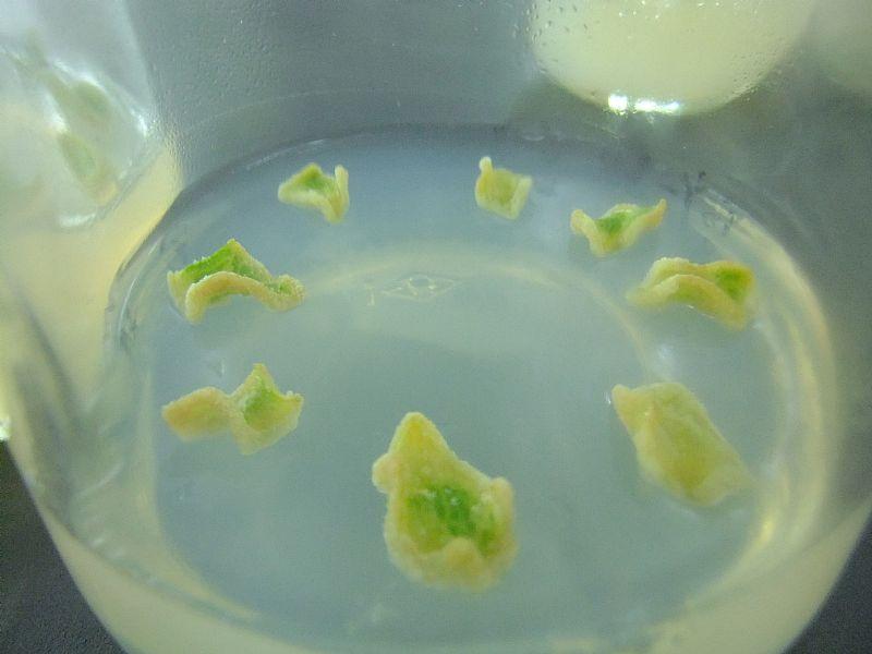 本人的试验材料是一种野菊,希望先通过叶盘形成愈伤,再诱导愈伤萌发芽点。但我的组培知识并不扎实,所以想请教大家下。这些叶盘培养了两周了,边缘的愈伤有许多白色的小疙瘩,像糖霜一样,这种愈伤属于致密型的吗?是疏松型的愈伤易出芽还是致密型的易出芽? 先谢谢各位了! |