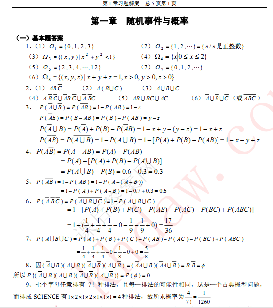 【课后答案】概率论与数理统计 (齐民友 高等教育出版社)