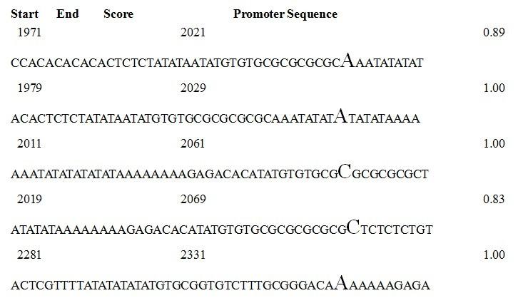 然后用其他的软件就预测不到,比方说PROMOTER 2.0, Web Promoter Scan Service