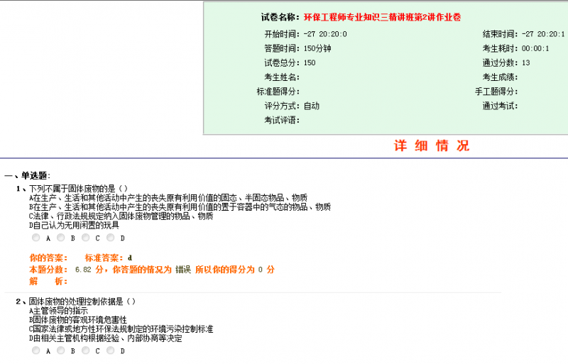 【习题资源】环保工程师考试课堂练习2