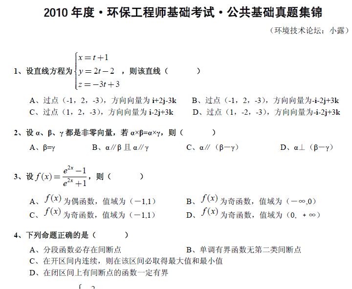 【真题资源】2010年注册环保工程师基础考试公共基础真题