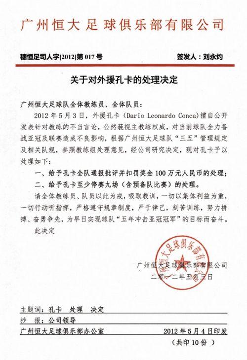 【体育早晚报】恒大宣布重罚孔卡:通报批评+罚款百万+至少停9场
