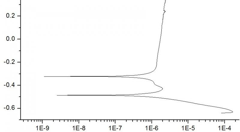 管线钢X80 在1mol/L Na2CO3+0.1mol/L NaHCO3 扫描范围为-1.1275V至0.5V,扫描速度为0.5mV/s。