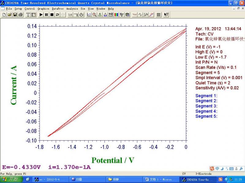 为什么我的循环伏安图是这样啊?各位高手给个解释!我做了N次了,每次都这样。