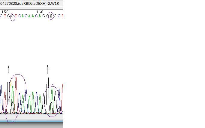 我有个测序结果,两个碱基上分别有突变,但是结果分别读出了小峰的序列,这是咋回事呢 ?求高手帮忙