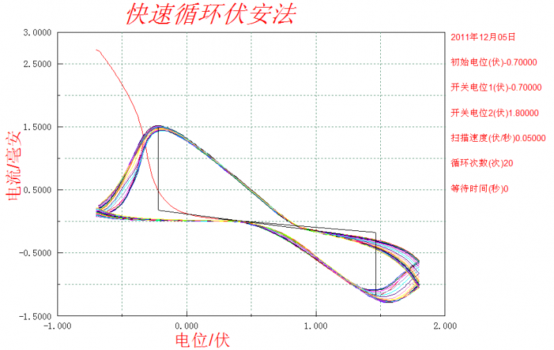 做了一个电致变色的循环伏安图,不知道怎么分析,希望了解的人帮一下忙。发个原始图先