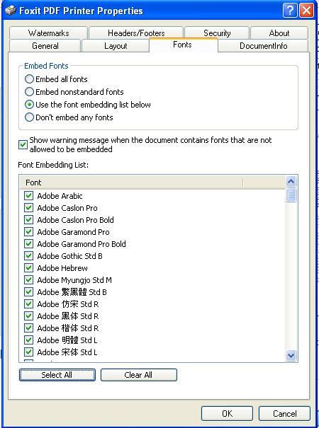 环境:latex, IEEE Conference 模板 PDF采样 foxit reader PDF打印 foxit pdf printer 出现的问题: I'm getting the error "A PDF font is not embedded." What can I do about this? This error occurs when a PDF document does not include all the fonts that it references. This may cause fonts to be substituted when printing or rendering, yielding papers that have incorrect spacing or equations. IEEE, ACM and other publishers require all fonts to be embedded. Hints on fixing this problem can be found at Adobe, Adobe (Law), IEEE or PaperPlaza or dvipdfm. To check if all fonts are embedded, open the PDF of the paper or the figure in Acrobat and check under "File/Document Properties/Fonts" (Windows) or "File/Properties/Fonts" (MacOS). All fonts must say "embedded" or "embedded-subset". (The precise location of the menu option may depend on the version of Adobe Acrobat.) The IEEE maintains a set of Acrobat job options. For MacOS, you can open the file in Preview and save the document to another file. This will embed all the fonts. Also, Microsoft Word on MacOS exports proper PDF with embedded fonts. Gnuplot-generated PostScript often has this problem. Mohit Lad recommends the following: By default, gnuplot does not embed fonts in eps files; insert this line in your gnuplot script (note that 26 is the font size that can be changed). set terminal postscript eps enhanced "NimbusSanL-Regu" fontfile "uhvr8a.pfb" 26 If you convert Postscript to PDF using ps2pdf, use the following arguments ps2pdf -dEmbedAllFonts=true -dSubsetFonts=true -dEPSCrop=true graph.eps You may also try the command above if your LaTeX file produces an embedded-font error. For EPS files generated by xmgrace, one should deactivate the Option "use device fonts" in the xmgrace print setup window. It has been reported that FreePDFConvert and cutePDF properly include fonts. 该问题的原因: 通常pdf生成中均嵌入错误信息中提到的信息,但是由matlab生成的eps中还是有字体嵌入问题, 网上的解决方法:(http://blog.csdn.net/shrs526/article/details/3893710) 1. 后来发现这些Helvetica字体全都来自matlab保存的eps图形中,于是用Ultraledit把eps文件中的Helvetica全部替换成为Arial,再次生成PDF文件后,发现所有的字体都能够embedded了。 我的解决方法: 用latex生成pdf以后,将该pdf用foxit pdf printer 再打印一次,打印是选择 Print -- 选择(Foxit PDF Printer)-- Propertties -- Fonts -- Embed Fonts (选择 Use the font embedding list below) 选择下面全部字体 OK 选择打印 |