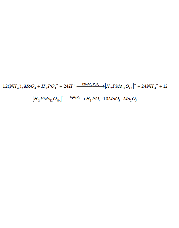 | 正磷酸盐与钼酸铵反应生成磷钼杂多酸的方程式 以及磷钼杂多酸被抗坏血酸还原为磷钼蓝的方程式,谢谢啦,急用!! |