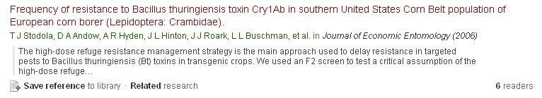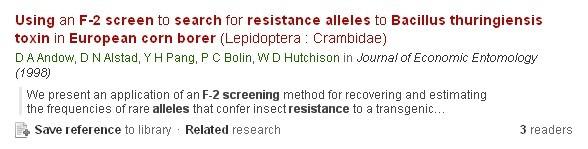 Using an F2 screen to search for resistance alleles to Bacillus thuringiensis toxin in European corn borer (Lepidoptera : Crambidae) Andow,et al. 1998 |