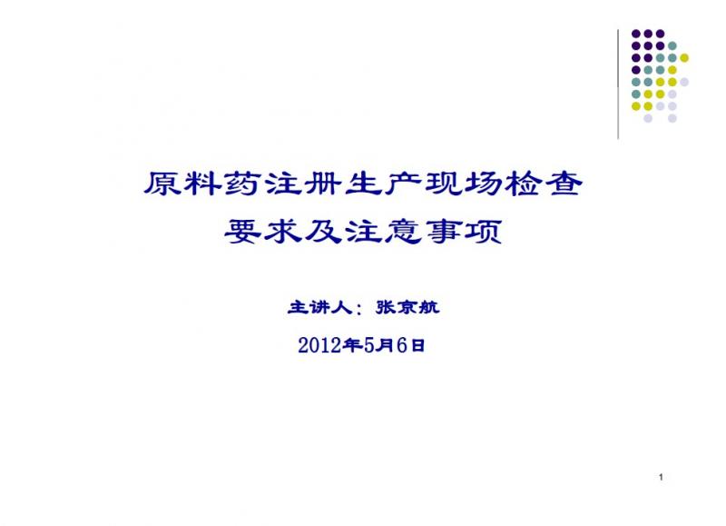 本内容由用户自主发布,如果其内容涉及到知识产权问题,其责任在于用户本人,如对版权有异议,请联系邮箱:xiaomuchong@tal.com - 附件 1 : 原料药注册生产现场检查要求及注意事项—张京航.rar