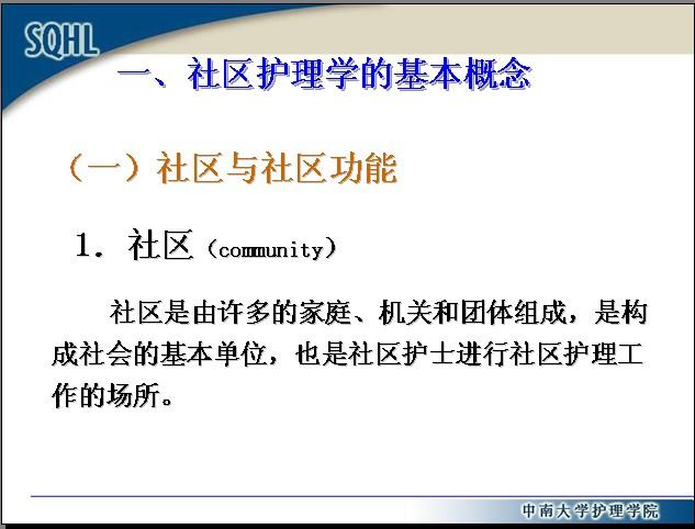 本内容由用户自主发布,如果其内容涉及到知识产权问题,其责任在于用户本人,如对版权有异议,请联系邮箱:xiaomuchong@tal.com - 附件 1 : _社区护理概论1.ppt