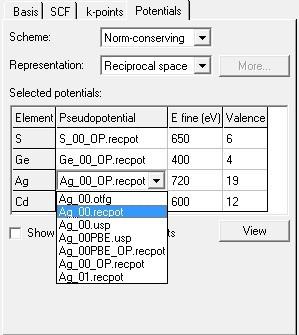 就像我这个图中那样,在norm conserving默认的赝势下,点击Ag元素后面的下拉框,就可以看到很多其它赝势,你随 ...