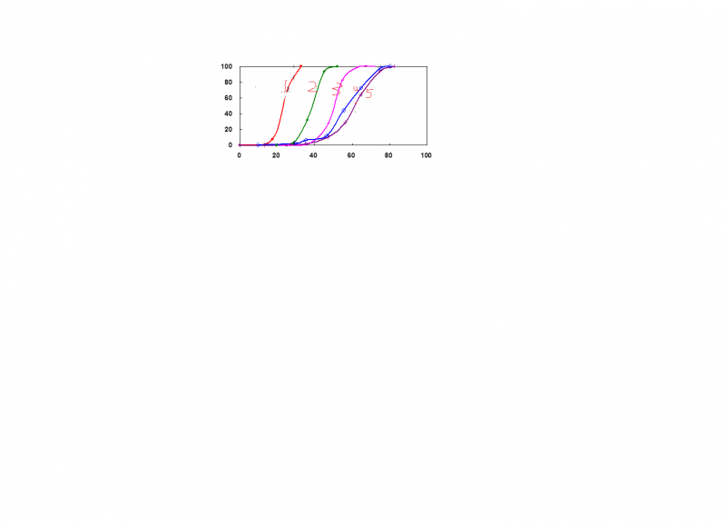 如图所示,4、5勉强能用标准的S型曲线公式来表达,其他的感觉就有点不太标准了,请问各位高人,如何修改一下S型曲线公式,能将图中所有曲线都表达出来(就是只修改参数,不变方程类型)?或是有其他的公式能表达这一系列的曲线呢? 先谢谢各位了 |