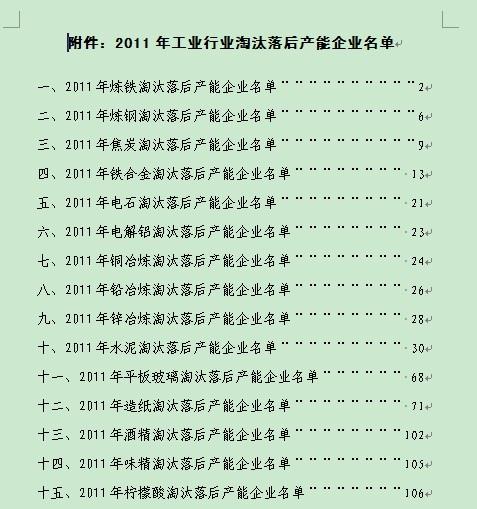 2011年工业行业淘汰落后产能企业名单【已搜索,无重复】