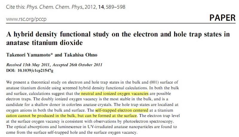 TiO2中杂化密度泛函计算空穴和电子trap state(PCCP,日本人的小文一篇) 已有1人参与