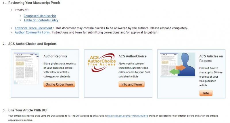 文章被ACS下的EST期刊收录,校稿时除了需要校稿外,还有一个部分的标题为ACS Authorchoice and Reprints, 具体见上传的图片,