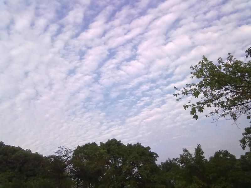 I was just back from the dinner, and finding the sky is so beautiful blue with white cotton like cloud, so vast and open looking up the sky without anything to be thought about but the feeling of indescribable comfortableness and sense of euphoria... Beneath this pleasent sky, I feel so happy and want to hold the time.... Here is the sky on my phone which I took just now... wish these could bring you a nice mood..~\(≧▽≦)/~ |