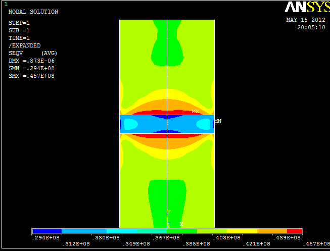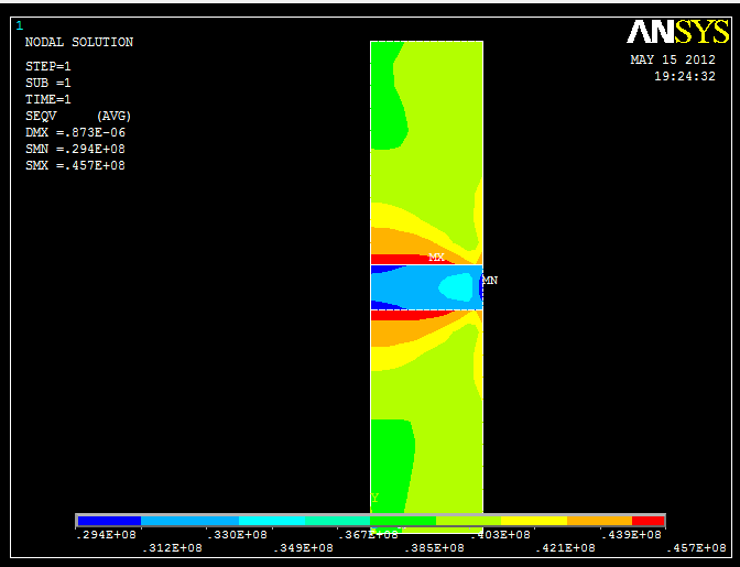 本人想做一个简单的焊点拉伸应力分析,可是不知道铜棒和焊料之间的界面怎么定义,直接glue出入下图的应力分析,情何以堪啊····求指教,怎么处理两种材料的界面啊