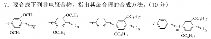 我们历年的考试中有一道这样的题,如图,求教啊,查了不少文献没找到啊 下面这篇文献的绪论部分好像有,但是下不来唉。求大侠帮忙。。。 含冠醚聚苯撑乙烯(C-PPV)与PS-C-PPV-PS的合成及其自组装性能的研究 [ 来自科研家族 高分子家族 ] [ Last edited by xuzhixiao on 2012-5-16 at 17:17 ] |