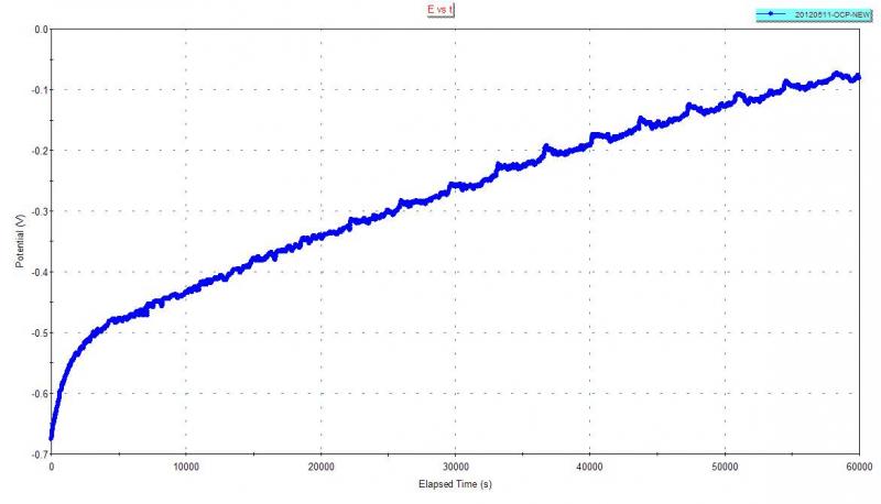 各位前辈,本人现在做的是纳米晶的电化学性能,最近测了几组开路电位,发现曲线没有平台区啊,先是快速上升,然后是缓慢上升,没有稳定值。测试时间是60000s,每6s取一个点,换了几个参比电极,结果都是这样的,请高手赐教,是正常情况,还是错误情况呢? [ 来自科研家族 生物材料 ] |