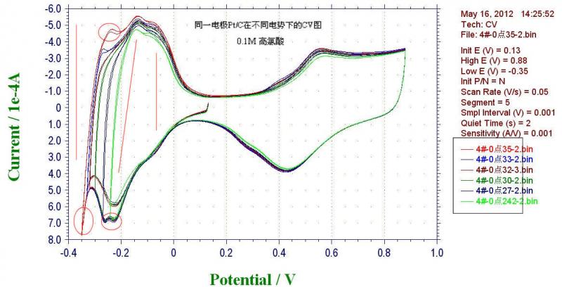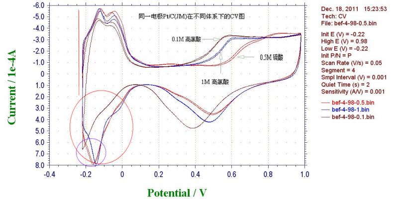 请教大虾们关于硫酸体系和高氯酸体系下的CV曲线差别