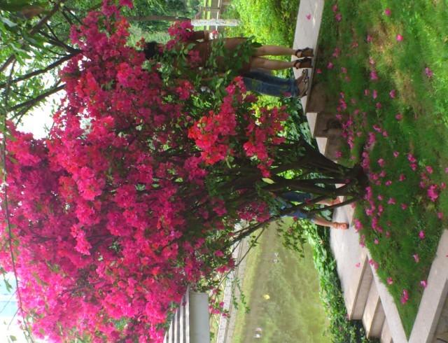 三角梅本是紫茉莉科中的一种藤状小灌木,又名叶子花、毛宝巾、九重葛,花叶勒杜鹃为常绿攀援状灌木。枝具刺、拱形下垂。单叶互生,卵形全缘或卵状披针形,被厚绒毛,顶端圆钝。花顶生,花很细,小,黄绿色,其貌并不惊人,不为人注意,常三朵簇生于三枚较大的苞片内,花梗与药片中脉合生,苞片卵圆形,为主要观赏部位。苞片时状,有鲜红色、橙黄色、紫红色、乳白色等;从叶子又可分花叶和普通2类;苞片则有单瓣、重瓣之分,苞片叶状三角形或椭状卵形;瘦果。总此宝巾约有40余个不同的品种。苞片形似艳丽的花瓣,故名叶子花、三角花。冬春之际,姹紫嫣红的苞片展现,给人以奔放、热烈的感受,因此又得名贺春红。 |