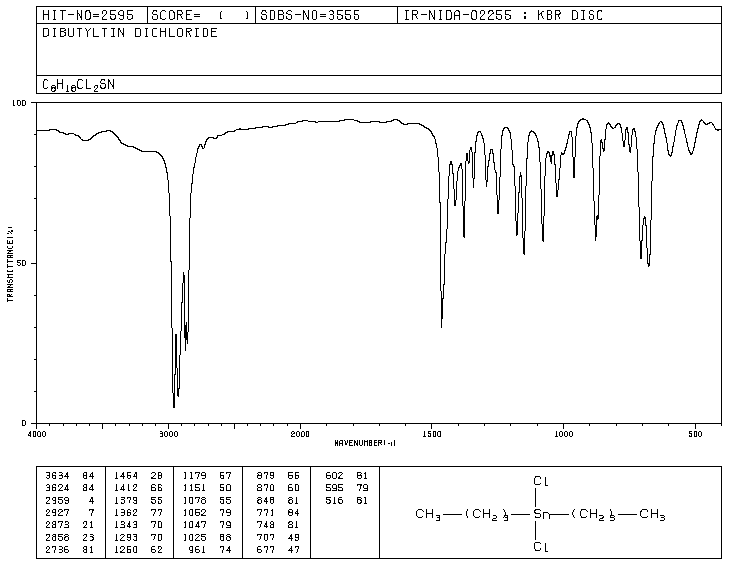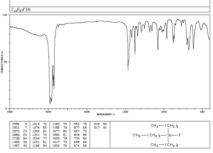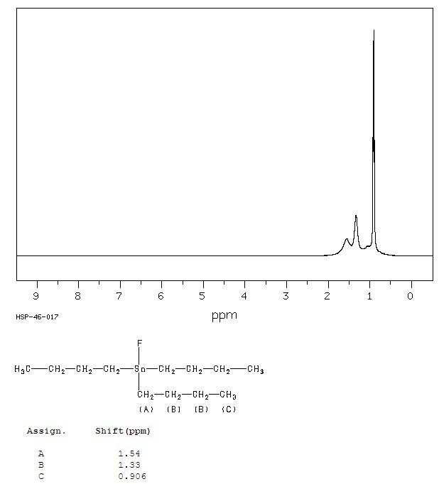 你要找的应该是三丁基氟化锡而非二丁基氟化锡,我把你要找的物质的红外贴到下面,顺便还有他们的HNMR,供你参考。