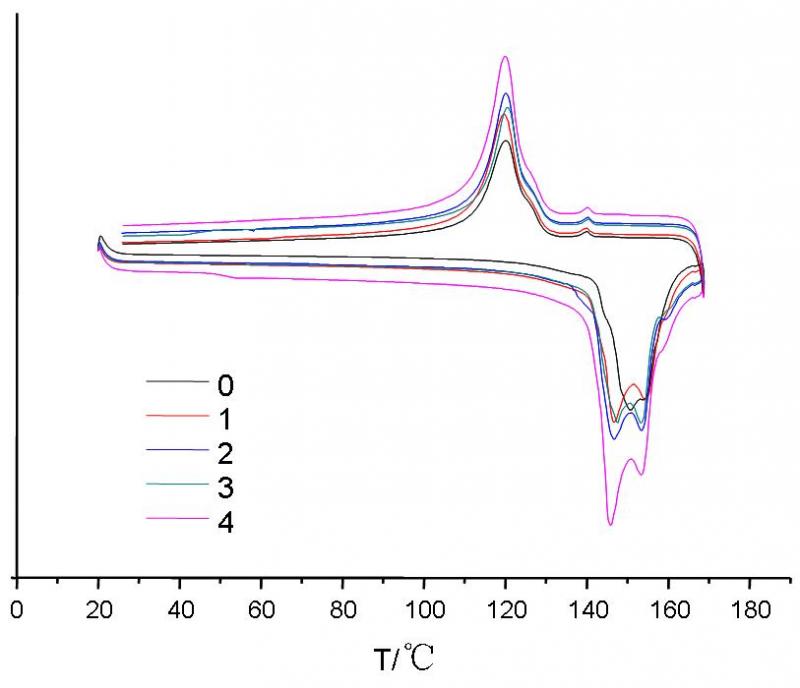 这是由于不同的晶型造成的,这种情况我们也遇到过,你看看文献,你的聚乙烯基体可能纯在两种不同的晶型,这样就会造成结晶或者融融的时候出现双峰,如果初始的聚乙烯没有两种晶型的话,就有可能是你加入纳米粒子之后诱导了聚乙烯的晶型重组,这是一个很值得研究的问题,如果查阅相关文献你会发现很多高分子都具有多种晶型,这种晶型上面的组合就会反映在DSC曲线上面……