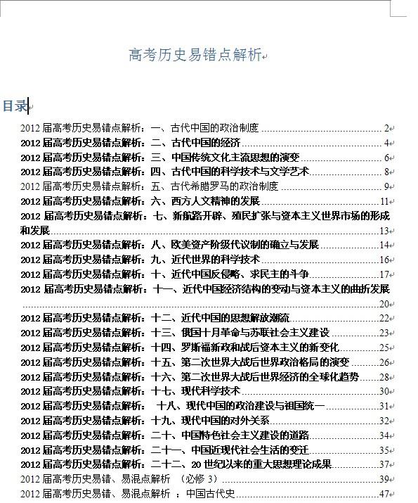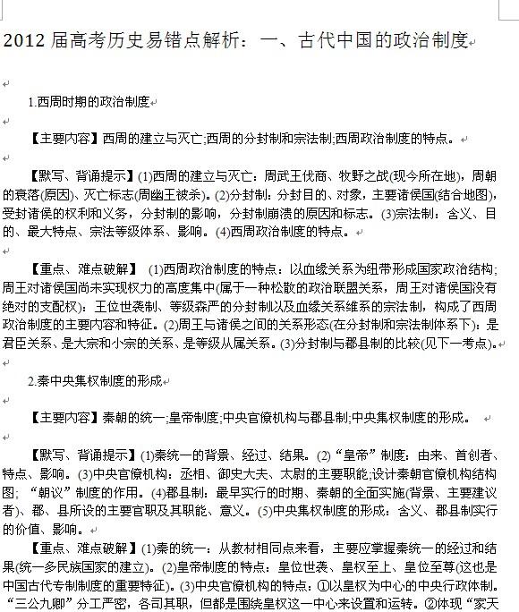 【讲义】高考冲刺宝典——2012届高考历史易错点解析(全套)
