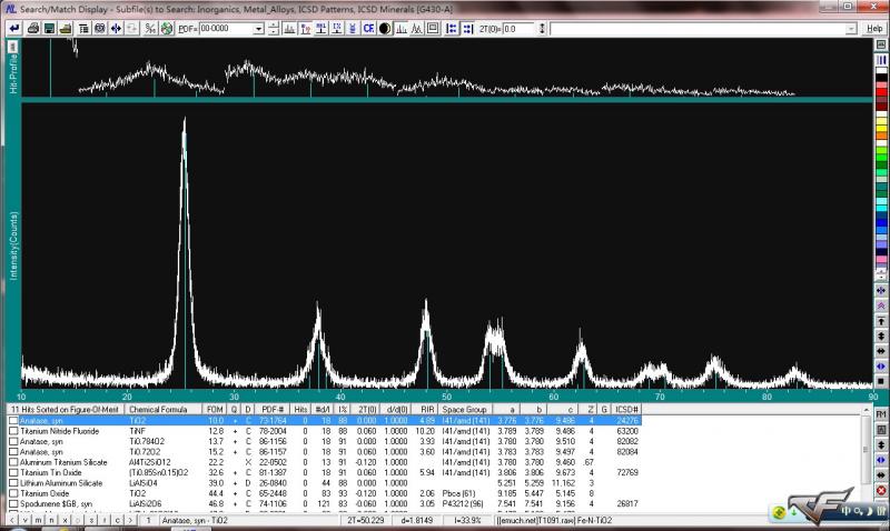 | 今天做了铁氮共掺杂二氧化钛光催化剂的XRD,但是不会分析,麻烦大家帮帮忙。我用的是jade5.0,希望能有比较详细的步骤和分析过程。 |