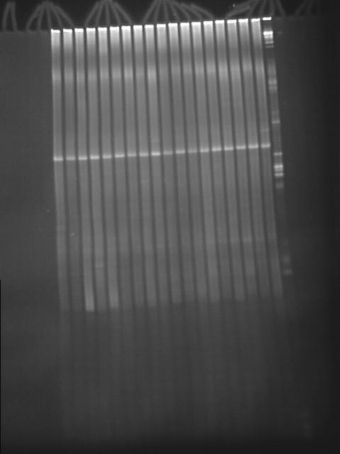 经过这么多次试验发现,如果胶孔处很亮,那么电泳结果一定是不好的。可是Marker跑的还可以,所以我不知道是不是PCR结果的原因?为什么胶孔处总是很亮?
