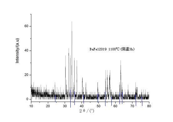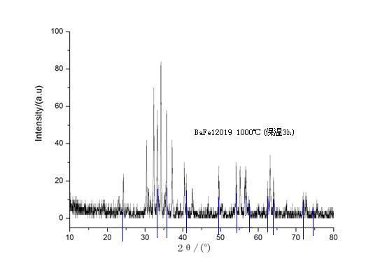 图中蓝色线条所标示的是Fe2O3的晶体衍射峰,剩下的就是BaFe12O19的晶体衍射峰了。谢谢!