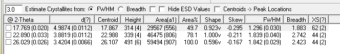 peak search report---customize---estimate crystallite size from FWHM values勾上这个 不过你要求结晶度,要晶粒尺寸有用吗? |
