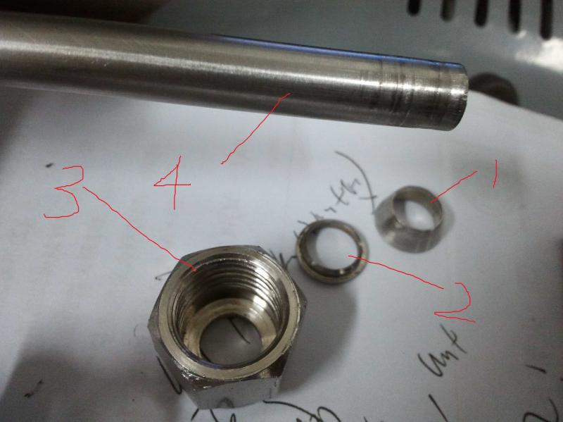 用来把螺母固定在直管上,这种螺母叫什么?怎么固定的?已经固定过一次,被翘掉了,还能再次固定吗? 1,2貌似都是螺母3的配件,本来1,2,3在直管上都是松动的,可以左右移动,要把1和2固定在直管4上,防止螺母滑落 1,2,3,都是套在直管上的 我看那师傅是把1,2放到3里,拿一个带外螺纹的管与3拧紧,然后再拧开,1,2就固定在4上面动不了了。 |