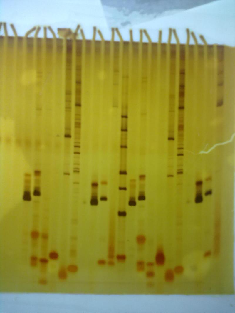 这个看着像是核酸电泳用强碱银染显影的东西,要是的话,感觉像是PCR循环多了