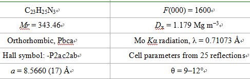 现有一晶体的参数、数据收集和精修信息,请高手把各参数相应的具体意义写出来。例如:C23H25N3:分子式,Mr= 343.46:分子量。请写出如F(000)等其它参数的具体意义。附图中贴出的是部分参数信息,更多参数见附件,完成(完成大部分也可)后请传至以下邮箱:cxj792190@sina.com。或者直接在下面回贴。谢谢! [ Last edited by 虎虎生威 on 2012-5-30 at 10:37 ] |