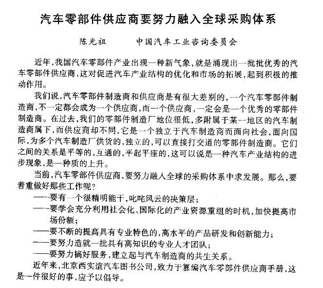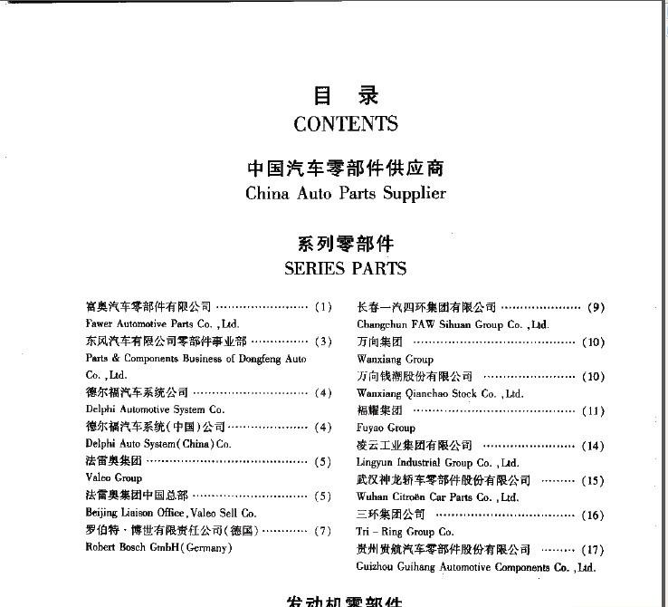 《中国汽车零部件供应商手册》中英文,2004版(无重复)