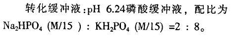 转化缓冲液:pH 6.24磷酸缓冲液,配比为Na2HPO4(M/15):KH2PO4(M/15)=2:8。