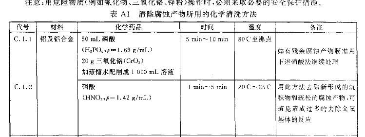 可以看看那个标准 好像说可以用磷酸+三氧化铬或者硝酸,清除腐蚀产物 只是我也不确定能不能清除你这种腐蚀产物,因为我自己也没用过 具体你看看我上传的图片 ![]() |
