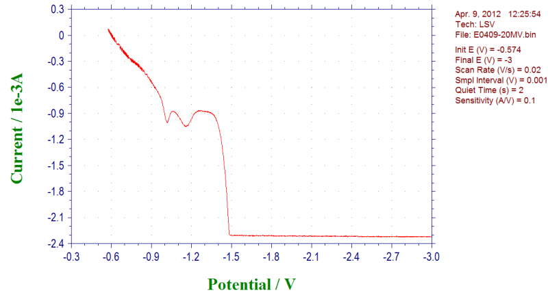 小弟在测极化曲线的时候,电流在很小的数值就走平了。请看图示,请高手帮忙解释一下,困惑中。。谢谢咯~ PS:使用的是辰华660a,实验是阴极还原,工作电极自制Pb电极(表观面积约为1.5cm2),对电极为Pt电极,参比饱和KCl。 极化曲线 |