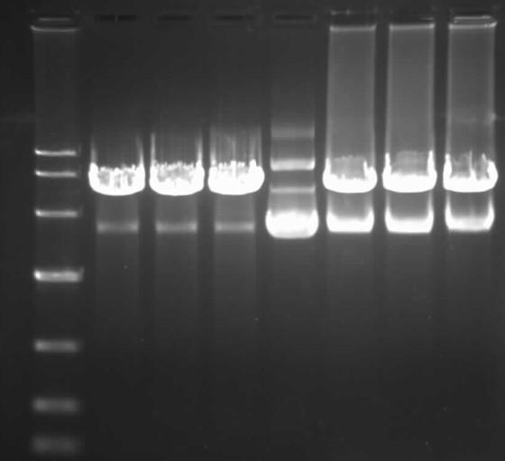 重新切了5ul质粒 条件不变 貌似依然没切完