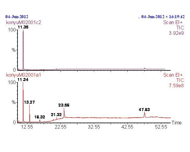 以下是做气质得到的一个关键组份的质谱图,总的不出合理的分子结构,还请,高人帮忙。该物质是通过苯胺与过氧硫酸胺反应得到的,不知图中133是否是分子离子峰,若是的话,该物质不是苯胺的二聚体,133与118相差15。可是产物中不应有甲基,再看77的峰,应该有苯环的,其他就不知怎么推了,还请好心人帮忙![]() |